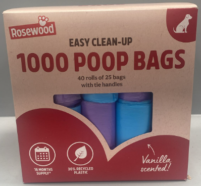 1000 Poop Bags - 40 Rolls of 25 Bags With Tie Handles