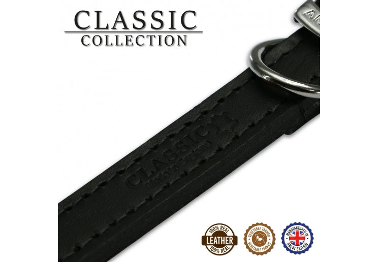 The 12" Plain Sewn Collar in Black, size 6, is an expertly crafted product that offers a simple yet stylish design. Made with precision and quality materials, this collar provides a comfortable fit for your furry friend. Upgrade your pet's wardrobe with this sleek and functional accessory.