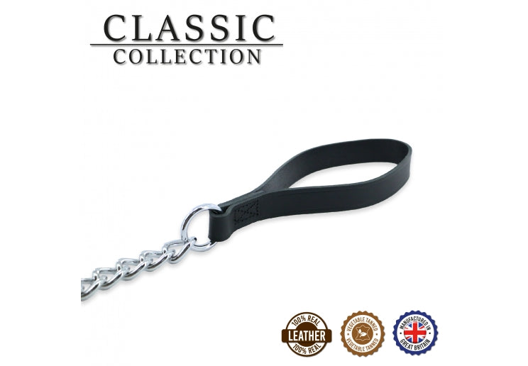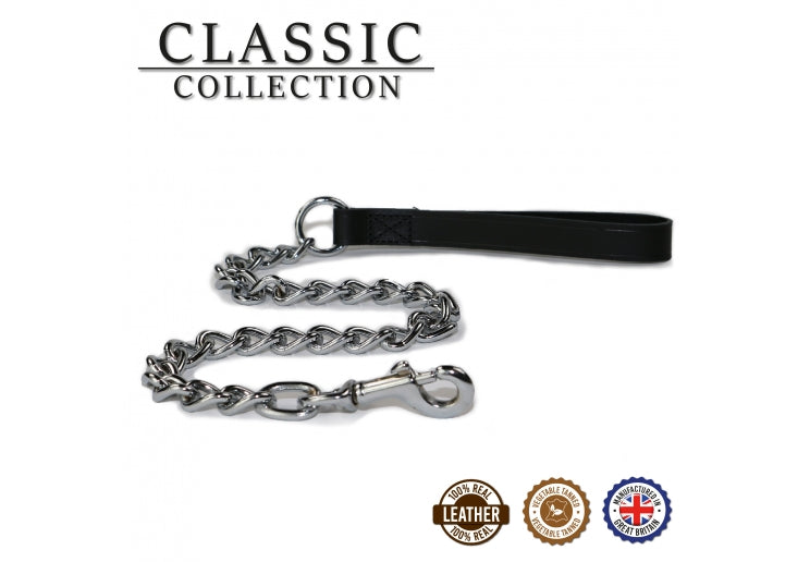 The 32" Black Extra Heavy Chain Lead With Trigger is designed for durability and control during dog walks. With its strong chain construction and easy-to-use trigger, this lead allows for comfortable handling and secure attachment to your furry companion. Keep your dog safe and stylish with this reliable chain lead.