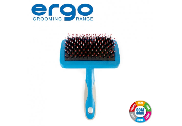 Ergo Hedgehog Slicker Small is an expertly designed grooming tool, with comfortable soft pins and bristles that effectively groom both undercoat and top coat. Its cardboard packaging can be widely recycled, and comes with grooming guides and information on the back. Part of the Ergo Grooming Range, in blue.