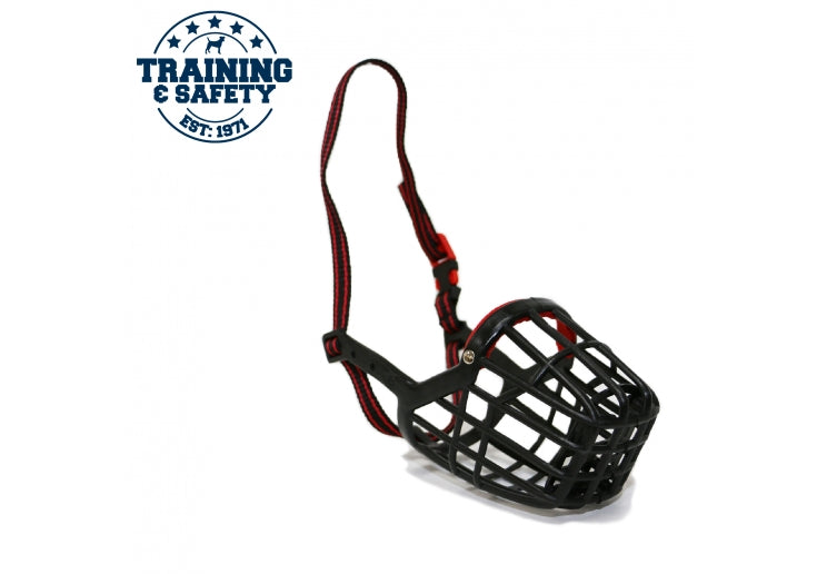 Dog muzzle in plastic. Allows the dog to pant and drink.
