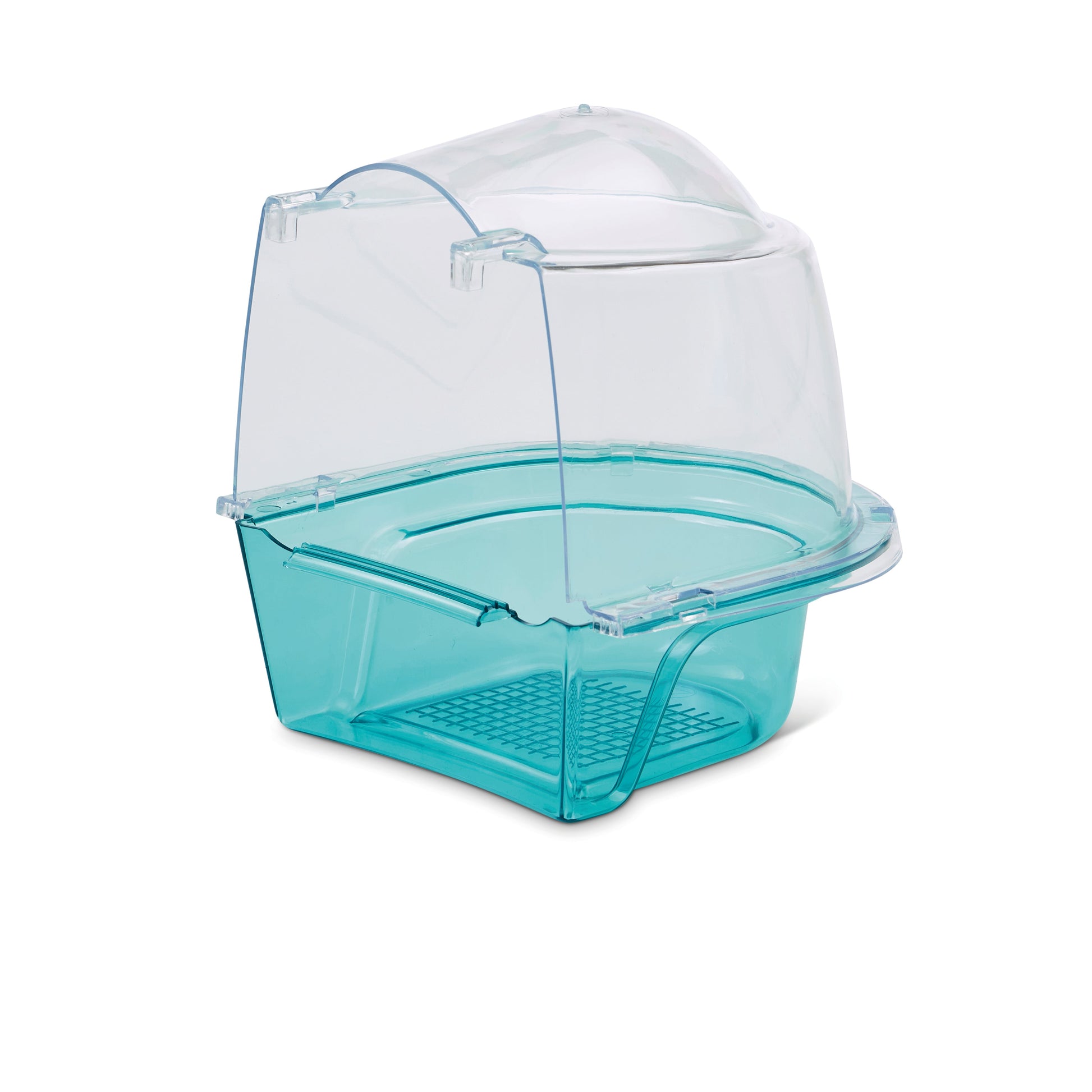 Offer your birds a refreshing bath with the Splash bird bath house. This practical and durable bath house, made from easy-to-clean plastic, can be easily attached to any bird cage. Thanks to its transparent top, you can easily watch your birds enjoy their bath time, while the design ensures a comfortable and safe bathing experience.