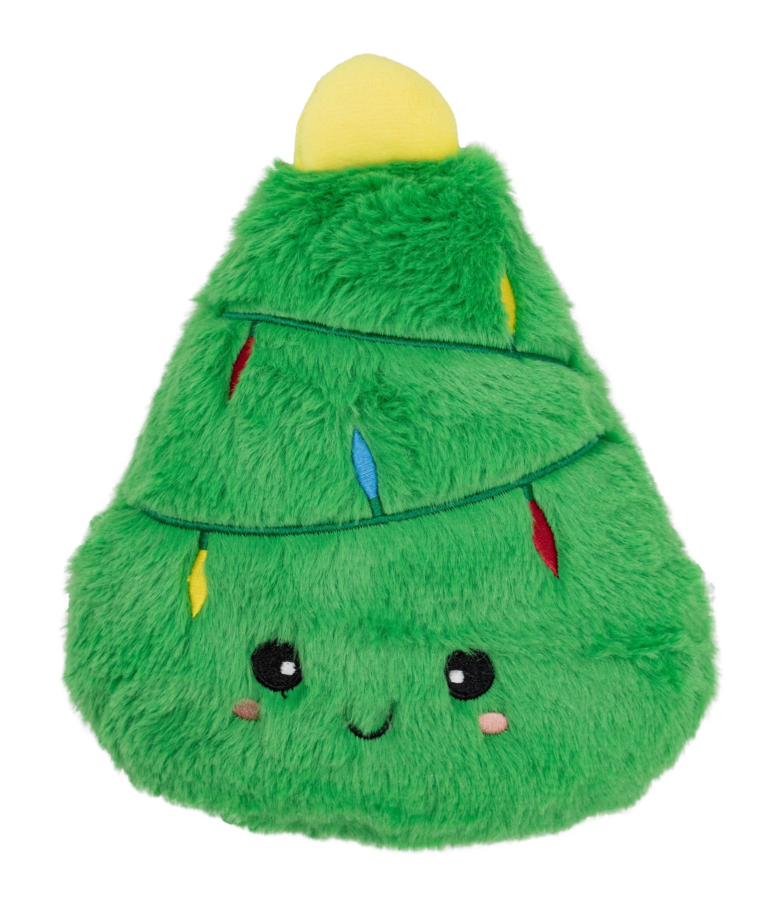 Measuring approximately 17cm by 18cm at its widest point, this soft and plush festive Christmas tree features a fluffy green texture with charming pink sewn-in rosy cheeks and colourful sewn-in Christmas lights. Equipped with a squeaker inside for added playfulness, it is thoughtfully presented in recycled packaging, blending festive cheer with environmental responsibility.