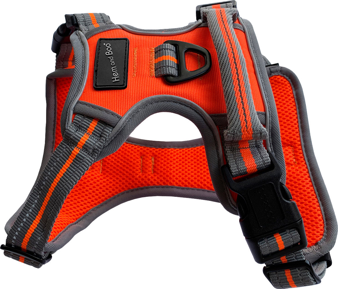 There is a grab handle on the back made from durable strong webbing, tubular in construction and padded for comfort. They are reflective for safety for those early morning and autumnal evening walks. Coordinate the sports harness with a matching sports lead or sports training lead.